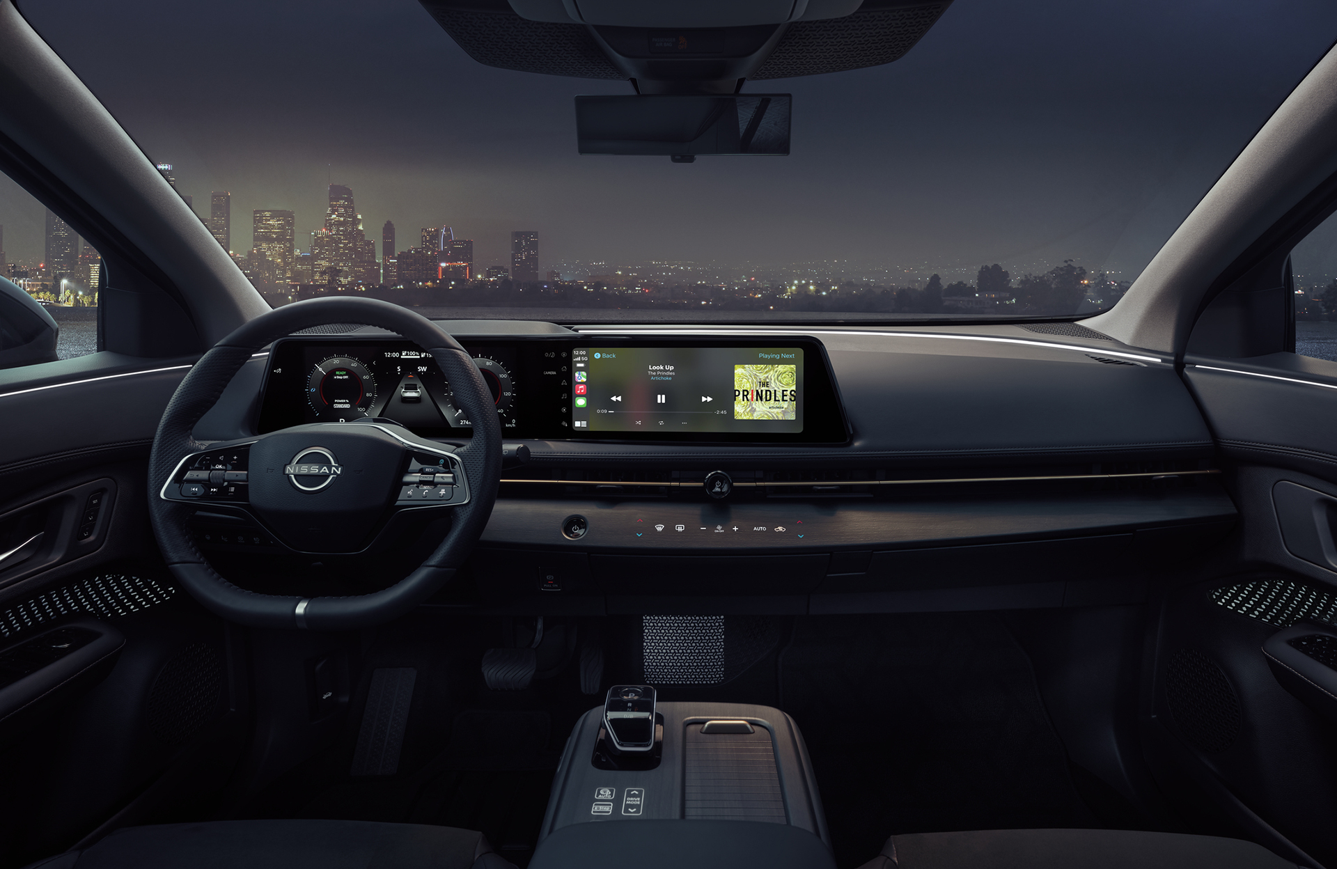 Modern, serene, and refreshingly functional, the interior of the 2025 Nissan Ariya redefines what drivers can expect from an electric SUV. The cabin’s minimalist design is elevated by premium materials and intuitive technology, creating a space that feels both sophisticated and approachable. Heated front seats come standard, while most trims offer an eight-way power-adjustable driver’s seat, making long drives around Roseville or Elk Grove feel effortlessly comfortable. Front and center, a sleek dual-screen layout blends a 12.3-inch infotainment touchscreen with a matching 12.3-inch digital gauge cluster, forming a panoramic digital command center that keeps key information and entertainment within easy reach. It’s a truly driver-focused experience that feels ahead of its time. Practicality hasn’t taken a back seat either. With the rear seats folded, the 2025 Nissan Ariya provides up to 59.7 cubic feet of cargo space—perfect for road trips, errands, or active weekends in Rocklin or Lincoln. A standout feature is the power-operated center tray, which slides out from beneath the dash at the touch of a button to provide on-demand storage that disappears just as easily. Blending comfort, utility, and innovation, the 2025 Nissan Ariya’s interior sets a high bar for what’s possible in an electric crossover.